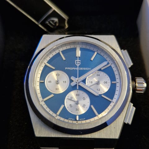 Pent brukt klokke fra Pagani Design, fremstår ny. Type Land-Dweller, 40mm, automatisk. Eske følger med.
