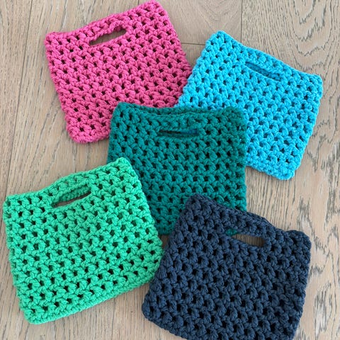Håndlaget heklet pose rosa flerfarget
