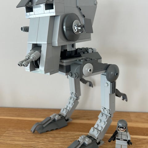 Selger en meget pent brukt AT-AP Walker fra 2008. Byggesettet har et innfellbart støttebein, en cockpit som kan åpnes og en roterbar blasterkanon på toppen. Settet er basert på Star Wars: Episode III Revenge of the Sith. Passer for samlere, de som vil bygge noe kult fra Clone Wars‑tiden eller for de på utkikk etter fin gave til en Star Wars entusiast.