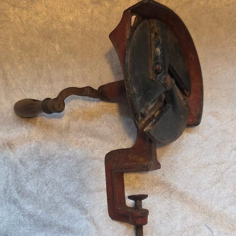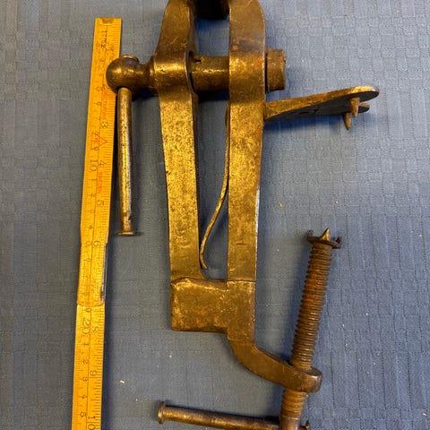 Gammel stolpestikkemed bordfeste metall