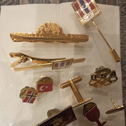 Samling emaljerte nåler med flaggmotiv