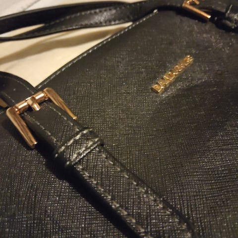 Skulderveske for dame i kunstlær. Vesken har strukturert overflate og kommer i en mørk blå farge. Den lukkes med glidelås på toppen og har metallfester i gullfarge til skulderreimer. Det følger med en bred justerbar skulderreim samt en ekstra smal reim, som begge kan tas av og på etter behov. Praktisk størrelse som passer til hverdagsbruk, med plass til nødvendigheter som lommebok, mobil og småting.