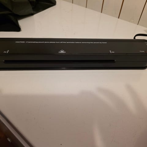 Svært lite brukt lamineringsmaskin med lamineringslommer. Det er kun brukt noen. Må hentes.