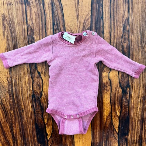 Ullsett str 68 selges. Vi rakk dessverre ikke å bruke det før det ble for lite. Økologisk bomull innerst og myk merinoull ytterst.