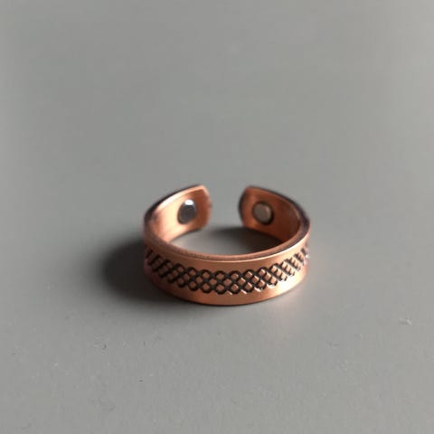 En vakker ring i kobber med magneter.