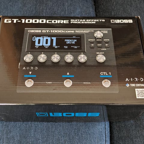 Boss GT-1 gitar multieffektprosessor. Kompakt effektbrett for elektrisk gitar med innebygde forsterkersimuleringer, effekter og patch-minne. Enheten har display, flere fotbrytere for valg av lyder og innebygd ekspresjonspedal. Strømforsyning følger med, og alt leveres i original eske med støtabsorberende emballasje.