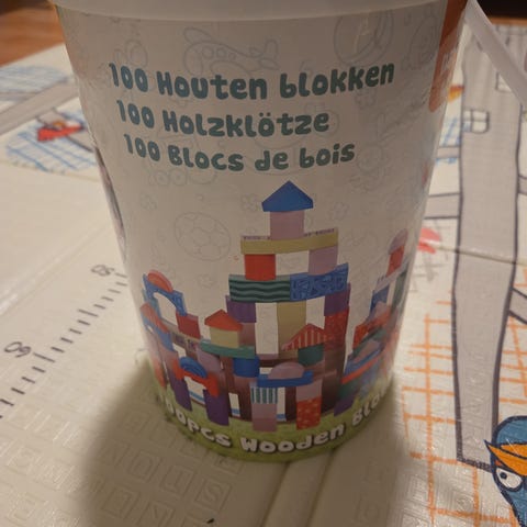 Eichhorn byggeklosser treleker med 60 deler i ulike former og størrelser. Klosser i tre med både naturfarget og flerfarget overflate, inkludert rektangler, kuber, buer og sylindere. Leveres i bøtte med lokk. Passer fra 12 måneder og oppover, og kan brukes til bygging, sortering og enkel konstruksjonslek.
