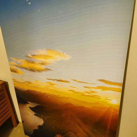 Selger skogsbilde. Det er noen få merker på kantene av den.