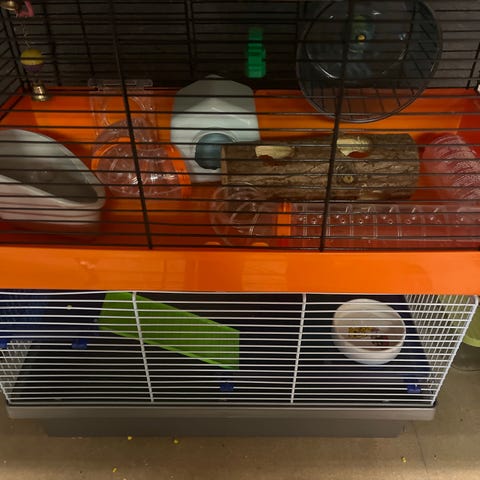 Smådyrbur med tilbehør metall og plast