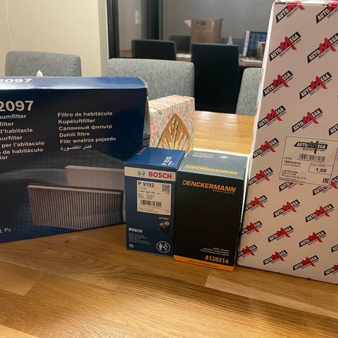 Luftfilter, oljefilter og olje som ble kjøpt til en Ford Mondeo som jeg nå har solgt.