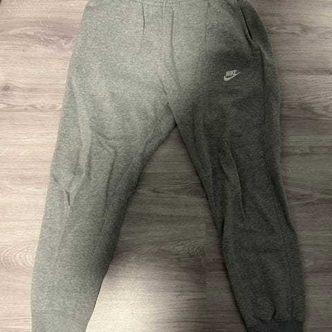 Nike joggebukse for herre i størrelse M. Buksen er blå og laget i bomull. Den har elastisk linning og strikk nederst ved bena. Egnet til hverdagsbruk og lett trening.