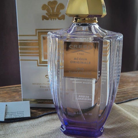 Flasken på bildene viser en Creed Himalaya eau de parfum i sølvfarget metallflaske med original eske. Flasken er merket «Made in France» på undersiden. Esken inneholder også informasjonskort fra produsenten. Dufttype og duftnoter fremgår ikke tydelig av bildene, men dette er en parfyme beregnet for personlig bruk. Størrelsen på flasken er 100 ml (3.3 fl. oz.), som passer til daglig bruk over lengre tid.