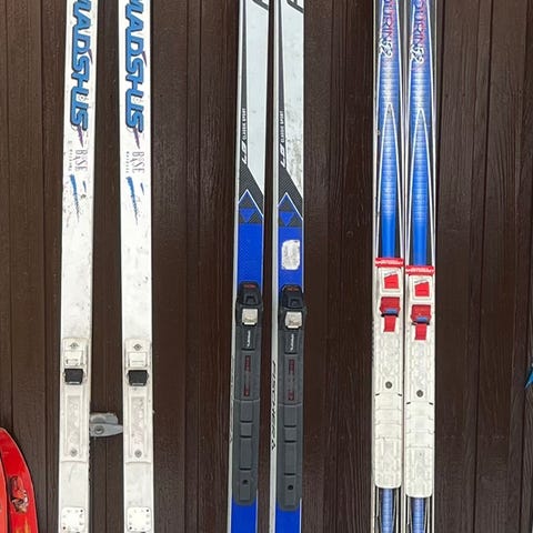 8 par smørefrie ski 6 par har vanlig Rottefella NNN bindinger 2 par har 75 mm 3 pin Rottefella bindinger Solide tur ski Også for deg som trenger ski for å lufte hunden etc. annvendlige ski til de fleste underlag og forhold. Lengder fra 190 cm flest ski fra 200-210 cm.
