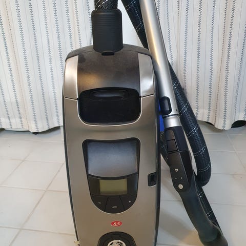 Støvsugeren er brukt og har en del kosmetisk slitasje (riper og merker), men fungerer som den skal. Justerbar sugeeffekt og solid konstruksjon. Produsert i EU.