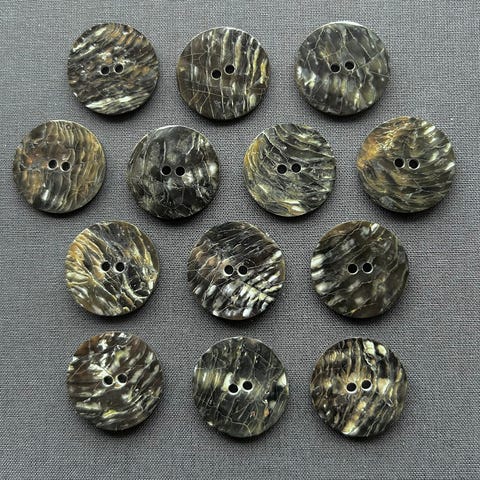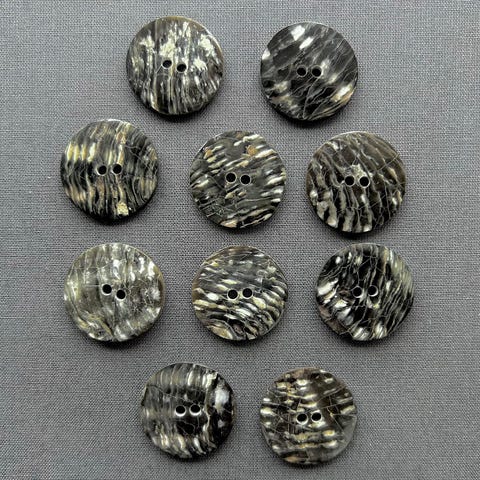 Nye ubrukte knapper. Lakkerte skjell-knapper, farge SVART, diameter 28 mm.