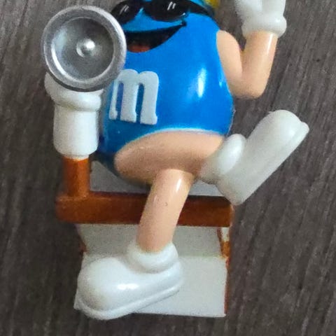 Dette er en M&M-samlefigur som forestiller den blå karakteren som en urmaker.