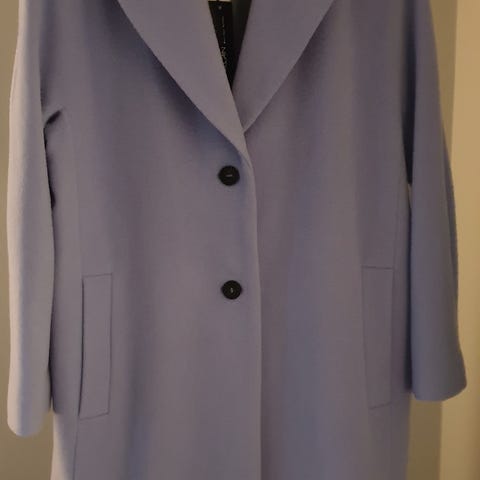 Pen kåpe i nydelig blåfarge til dame i str 38. Kåpen har klassisk, rett fasong med krage og slag. Den er dobbeltspent med knapper foran og har to frontlommer med klaff. Ytterstoffet er i 100 % virgin wool, den er kjøpt på Deguy i Oslo. Kåpen er nesten ikke brukt men trenger allikevel en rens😊