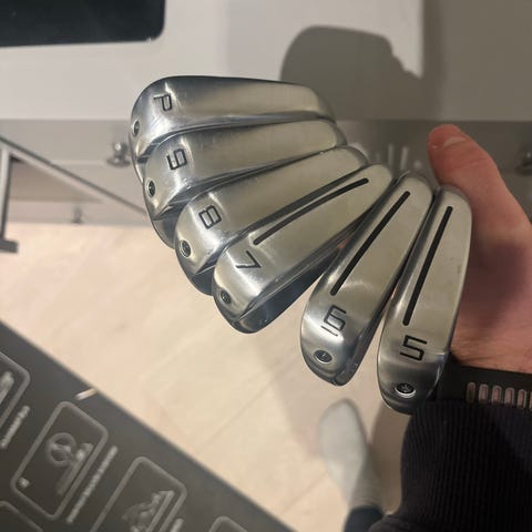 Flott jern sett P-5 lite hakk i pitcen men påvirker ikke spiller har et jumbo grep på 7 jerne .kan sende med et nytt grep viss det ønsket