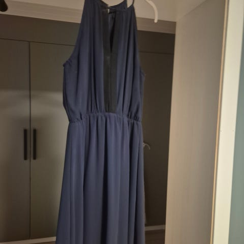 Fin mørke blå kjole fra Vila med lappen på.