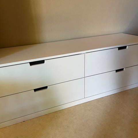 Kan brukes som den er, men mangler noen små lister mellom skuffene som kan fås tak i på ikea.