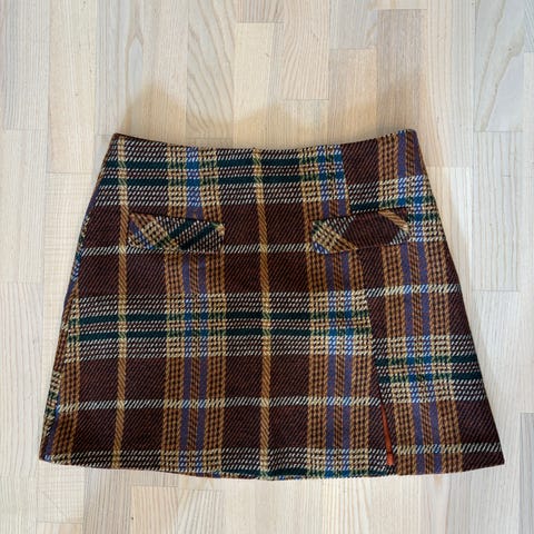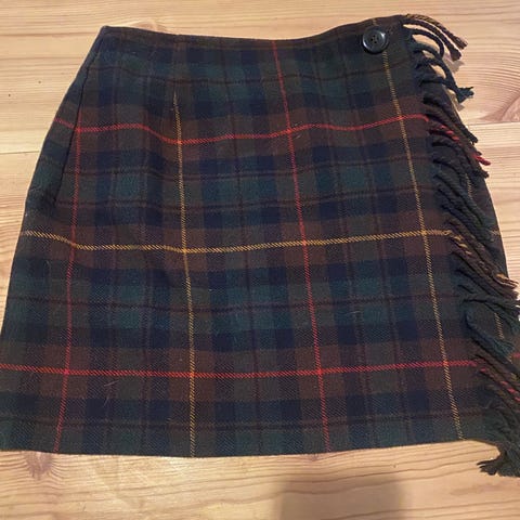 Kort omslagsskjørt fra Polo Ralph Lauren. Det er i ull og sitter kjempefint på. Spenne i siden og mulig å justere i livet.