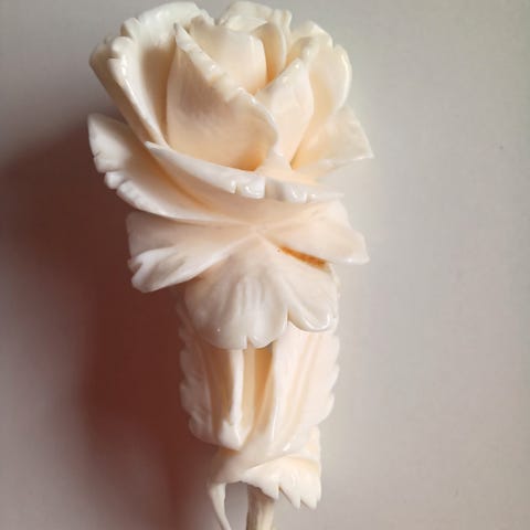Blomsten har en nÄl pÄ undersiden, slik at den kan festes pÄ klÊr, hodeplagg eller vesker.