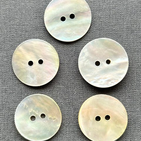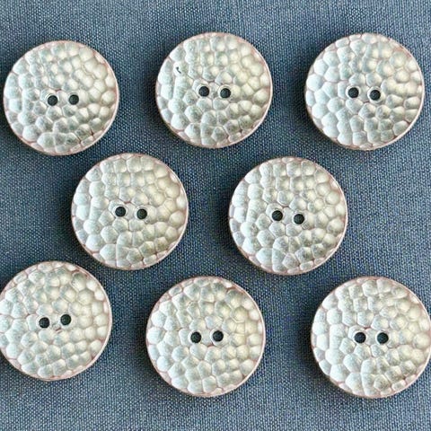Nye, ubrukte knapper. Metallknapper, sølvhvite med preget mønster, diameter 22 mm.