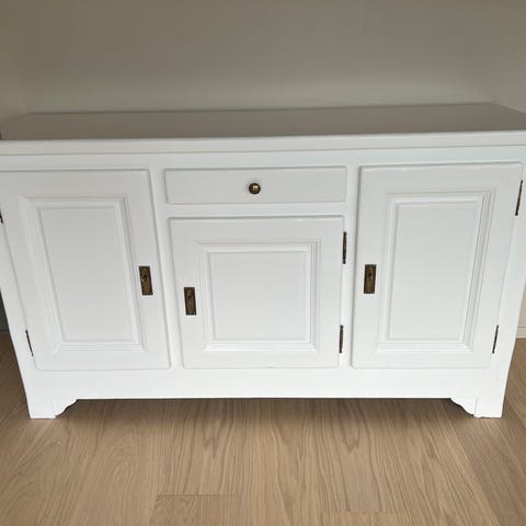 Praktisk skjenk med tre skuffer og tre skapdører med hylleplate.