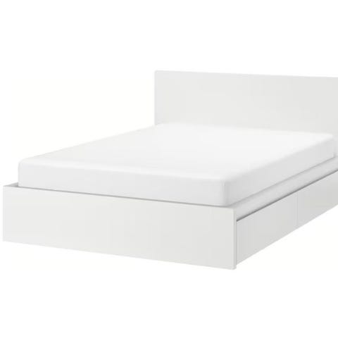 IKEA Malm seng med oppbevaring 140x200 cm hvit med Høvåg madrass
