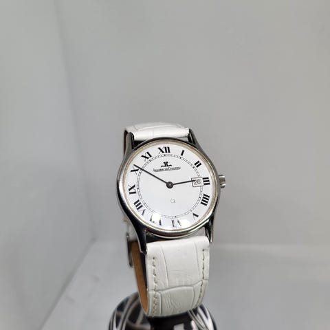 Stållenke med leddet design og foldespenne med JLC-logo gir god komfort og sikker lukking. Klokken fremstår i svært pen stand normal, lette bruksspor/hairlines på kasse og lenke, ingen dype hakk., og har nytt batteri. Det følger også med ekstra ledd til lenken.