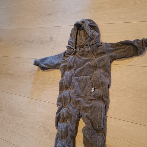 Newbie heldress for barn i størrelse 80. Heldressen er blå og laget av bomull. Glidelås og knepping, hette og lomme foran. Søtt trykk med bjørner 🐻fargen på første bilde er nærmest virkeligheten.