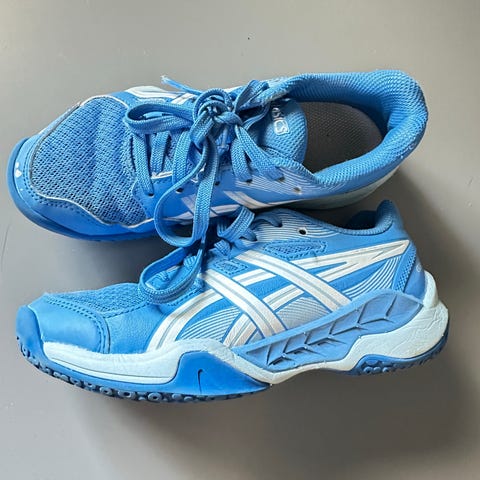 Str 35. Brukt som innesko på skolen. Passer for gymsalaktivitet også.gummien bakpå ene hæl er litt løs, kan sikkert limes. Må hentes.