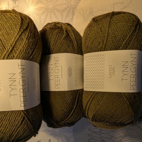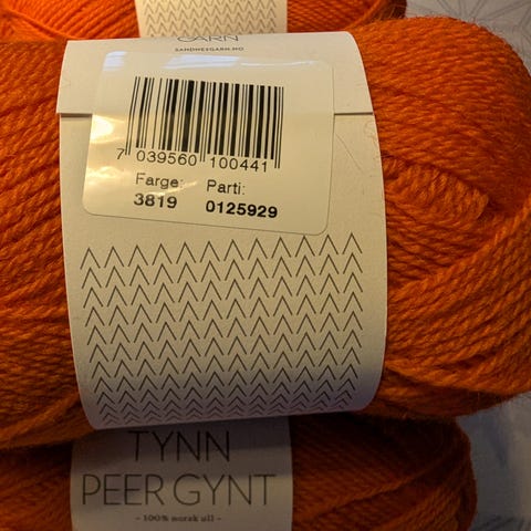 Selger 10 nøster med Tynn Peer Gynt garn fra Sandnes garn farge 2745, Cognac, alle har samme innfarging, kr 39 pr stk eller kr 350 for alle + porto