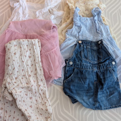 En stor pakke med jente klær i str 92, og noe 86 som er stort i størrelsen.