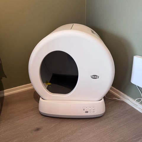 Dette kattetoalettet med egen mobil app, er selvrensende og helautomatisk. Kattetoalettet har en vektsensor som føler når katten bruker toalettet, og opererer deretter. Rensingen starter etter at katten har gått ut av toalettet. Toalettet stopper automatisk hvis katten går inn igjen. Lokk med UV-lys som dreper bakterier medfølger i pakka. Lokket med UV-lys skal ikke være koblet til når det ikke brukes. Når lokket er koblet til er toalettet i "cleaning mode" og andre funksjoner vil ikke fungere.