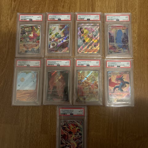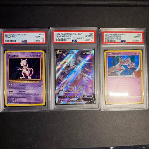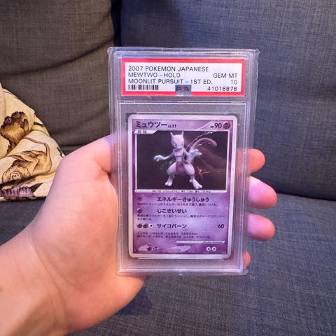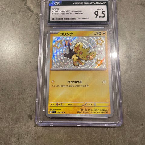 Pokémon samlekort PSA-gradert japanske kort. To Pokémon-kort i japansk utgave, innkapslet og gradert av PSA. Kortene er holografiske og leveres i faste plastkapsler med etikett som viser PSA-sertifisering og karakter. Egnet for samlere som ønsker graderte og beskyttede Pokémon-kort til samling eller utstilling.