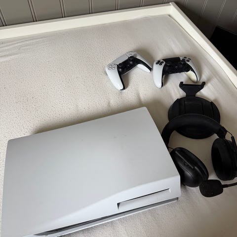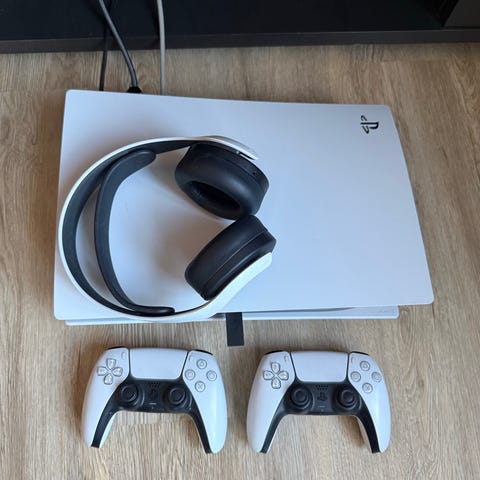 Svært pen og vedlikeholdt Sony Playstation 5 spillkonsoll i hvit.