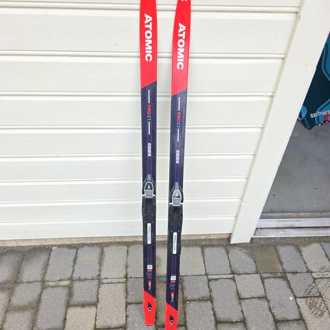 Atomic Pro C2 Skintec langrennski i lengde 195 cm. Modellen har integrert fell (Skintec) og er beregnet for klassisk langrenn. Skiene har NNN-kompatible bindinger fra Atomic montert. Fargekombinasjon i blå og grå toner. Egner seg til tur- og trening i preparerte løyper.