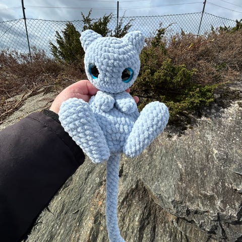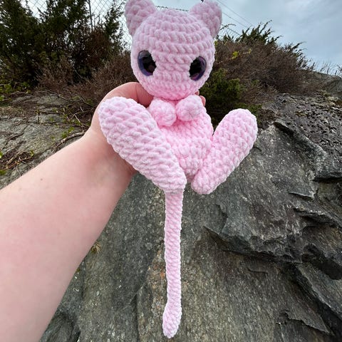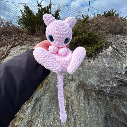 Håndlaget pokemon inspirert Mew snuggler bamse i neon rosa😍🩷