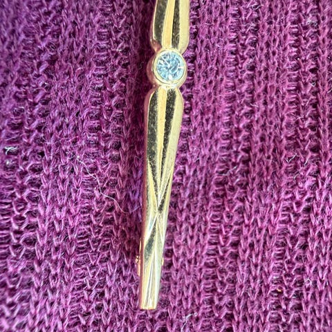 Elegant sølvfarget nål med 6 strass-stener.