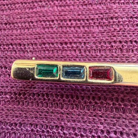 Sølvfarget nål med 6 strass-stener