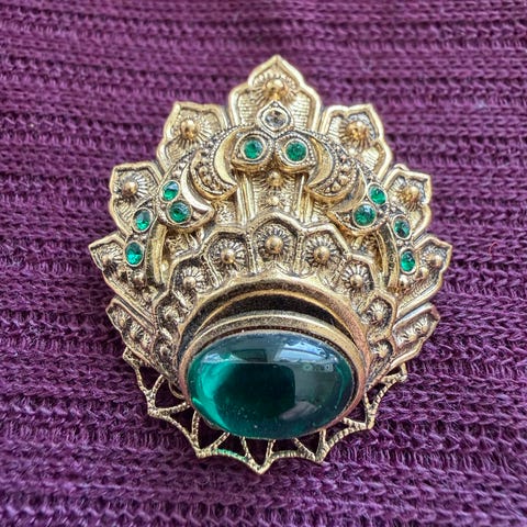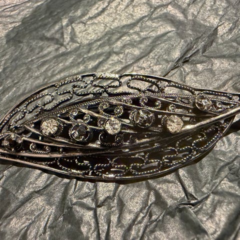 Sølvbelagt nål med strass-steiner.