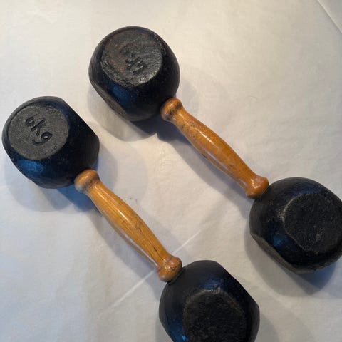 Håndvekter i støpejern med svart overflate.