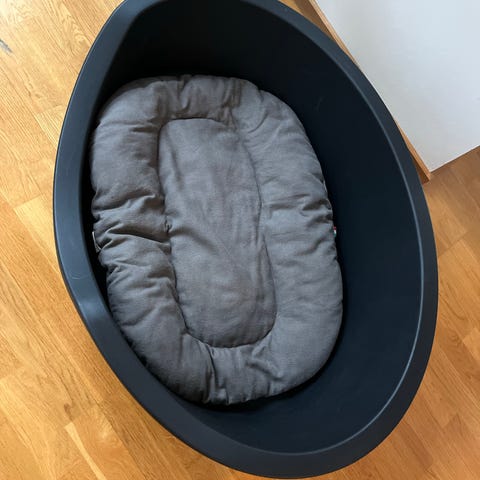 Hundeseng i rektangulær form med myk polstret bunn og høye kanter. Yttermateriale i grå tekstil med rutete innside i gråtoner. Egnet som liggeplass for hund, gir støtte rundt sidene og en dempet liggeflate på gulvet. Størrelse 65x50 cm.
