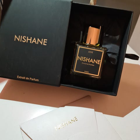 Nishane Ani parfyme. Rundt 25ml av 50ml. Kjøpt for 2600kr. Anerkjent, unisex nicheparfyme kjent for sin komplekse, krydrede vanilje og eksepsjonelle holdbarhet. Åpner med frisk ingefær og bergamott, etterfulgt av solbær og tyrkisk rose, før den tørker ned til en rik, kremet vanilje, sandeltre og ambra.