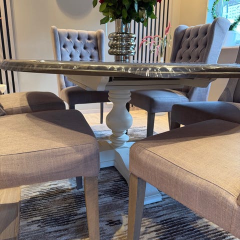 Smokey (M) rundt spisebord Ø120 H76 melamin mdf grå med metallben svart.