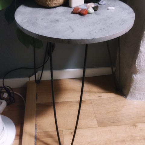 Lite firkantet bord i hvit utførelse. Bordet har enkel, glatt bordplate og fire rette ben. Passer som lite spisebord, arbeidsbord eller sidebord i kjøkken, stue eller andre rom med begrenset plass. Egnet for én til to personer ved måltider eller som avlastningsbord.