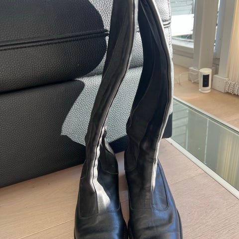 Fine skinnstøvletter, tidløs modell med høyt skaft, flat hæl og rundt tå . Glidelås på innsiden Brukt par ganger
