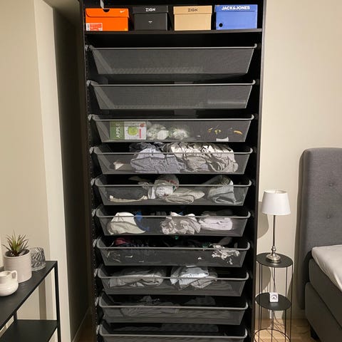 Det er en meget stor garderobeskap. Den ligger inne på soverommet. Den må tas fra hverandre før man kan bære den ut fra soverommet.