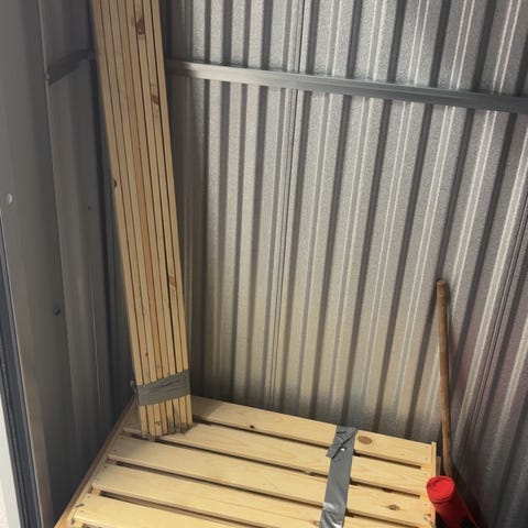 Består av et rammeverk i metall med flere hyller i tre/plate. Den egner seg til lagring i bod, garasje, kjeller eller andre rom der det er behov for praktisk oppbevaring. Hyllene gir god plass til esker, verktøy, utstyr eller andre gjenstander som trenger en fast plass. Metallkonstruksjonen gir stabilitet, mens trehyllene gir en jevn flate til oppbevaring.